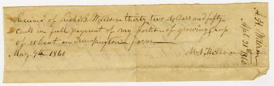 Receipts from A. H. Willson for portion of wheat left in father's will