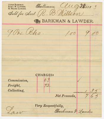 Receipt from Barroll & Ricaud, Baltimore
