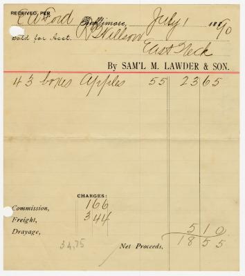 Receipt from R. B. Willson for forty-three boxes apples sold to Sam’l Lawder & Son