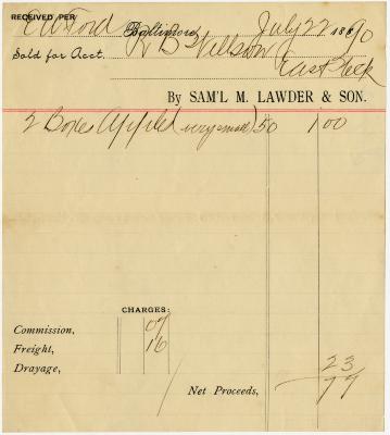 Receipt from R. B. Willson for two boxes apples sold to Sam’l Lawder & Son