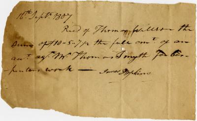 Receipt from James Hopkins for carpentry work