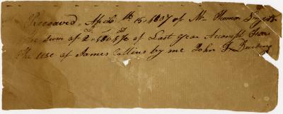 Receipt from John F. D. for the use of James Collins