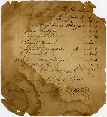 Receipt from James Bircoe for housewares