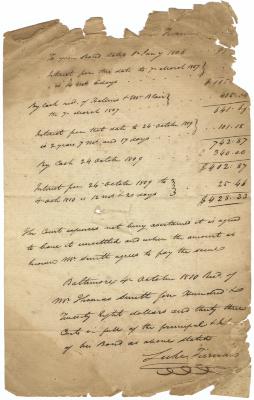 Receipt from Peter Arnold for weaving cotton, linen and linsey